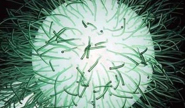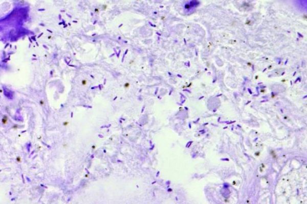 Bactérias C. novyi se desenvolvem e multiplicam enquanto combatem o tecido canceroso em um cão. As bactérias podem ser vistas ...