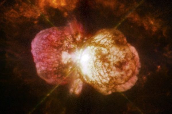 Em meados do século XIX, uma enorme explosão no sistema Eta Carinae criou a Nebulosa Homúnculo, a ejeção bipolar de ...