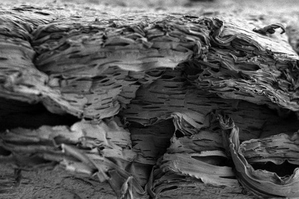 Micrografia eletrônica de varredura de uma estrutura porosa biodegradável desenvolvida por pesquisadores do MIT. Sobre essa membrana são fixadas diversas ...