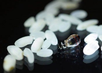 O marca-passo acima (fotografado junto a grãos de arroz), movido via energia sem fio, foi implantado com sucesso no coração ...