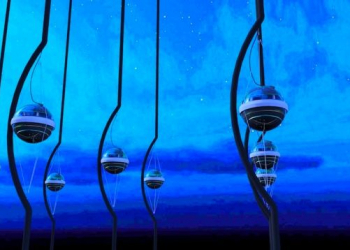Impressão artística de alguns dos mais de 5 mil módulos digitais ópticos instalados no gelo da Antártida pelo experimento IceCube. ...