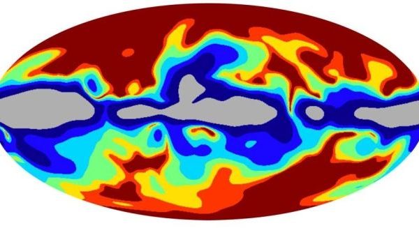 Mapa da poeira galáctica, produzido pela sonda espacial Planck (ESA), em que se baseou a verificação dos resultados do experimento ...
