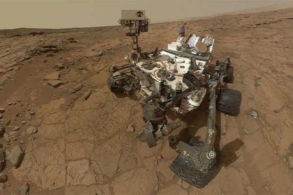 "Selfie" da sonda Curiosity na superfície de Marte. A imagem é, na realidade, uma composição de dezenas de imagens obtidas ...