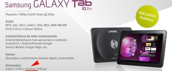 As lojas online da Vodafone e da FNAC disponibilizam a partir de amanhã o Galaxy Tab de 10,1 polegadas. Portugal ...
